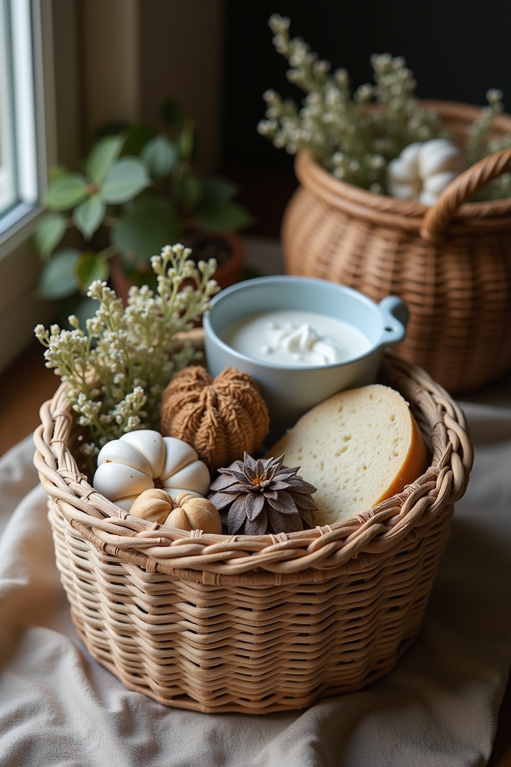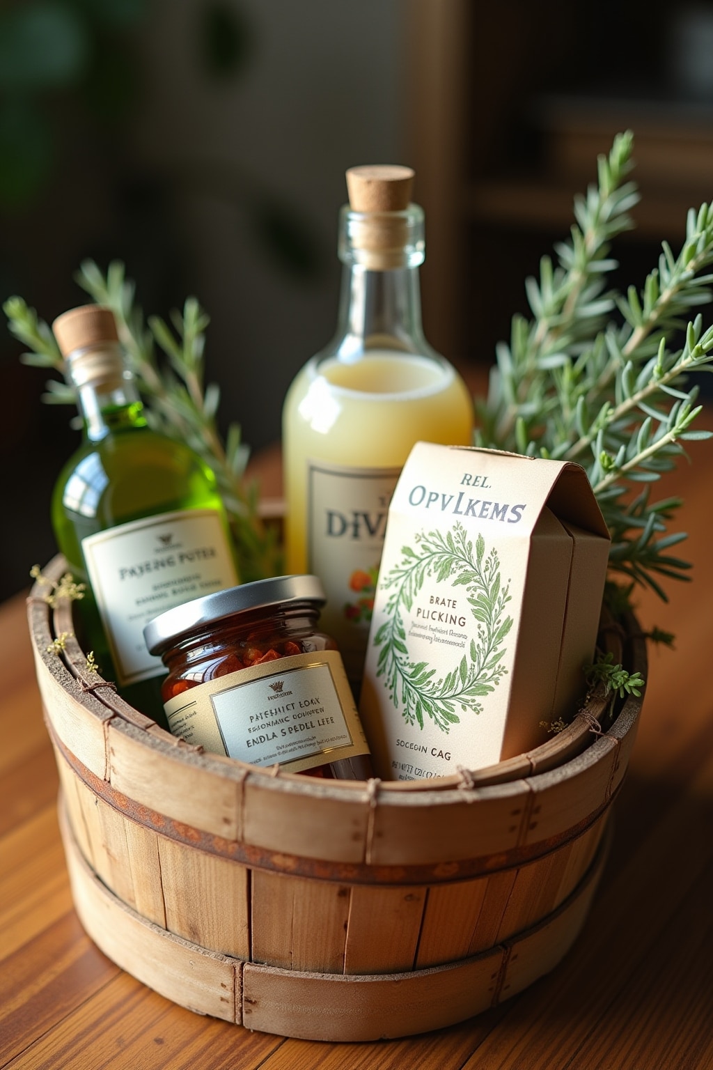 Eine ausgewogene Mischung aus praktischen, dekorativen und persönlichen Elementen sorgt für einen besonders gelungenen Geschenkkorb.