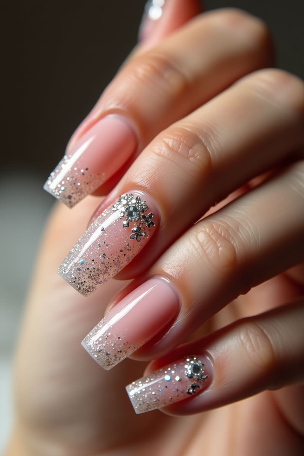 Beliebte Glitzer-Techniken: Ombré-Effekt mit Farbverlauf, dezente Glitzerstreifen oder vollständige Glitzer-Akzentnägel am Ring- oder kleinen Finger.