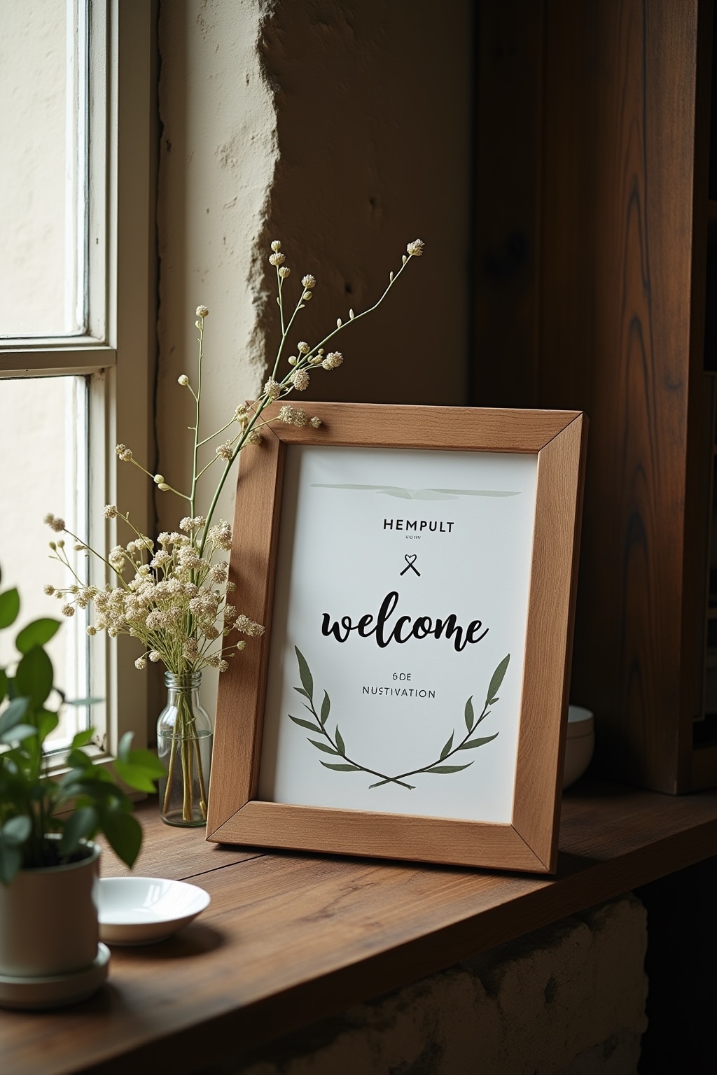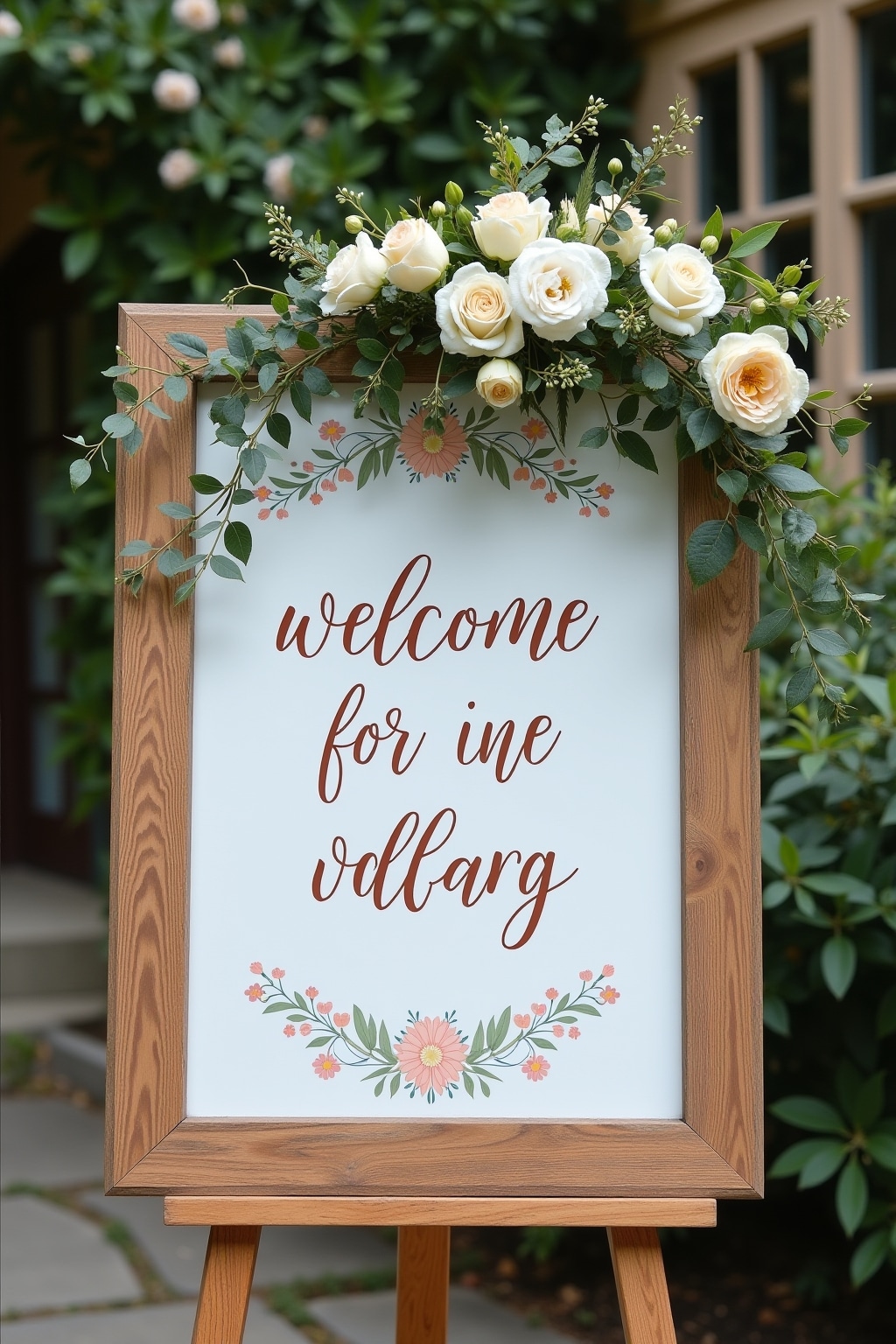 Dekorative Elemente wie frische Blumen oder Lichterketten werten jedes Willkommensschild auf.